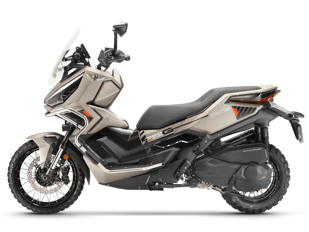 Максискутер ZONTES ZT368-G 2026 — мощный и технологичный городской и туристический транспорт с ярким современным дизайном и высоким уровнем комфорта. Одноцилиндровый четырехтактный двигатель объемом 368 см³ развивает 38.8 л.с., оснащен жидкостным охлаждением и инжекторной системой BOSCH, обеспечивая уверенную динамику и стабильную работу в любых условиях. Перевернутая телескопическая вилка, гидравлические тормоза J.Juan и крупные колеса обеспечивают отличную управляемость и безопасность. Вместительный бак, комфортная посадка и высокая максимальная скорость делают модель отличным выбором для города и дальних поездок. Гарантия 12 мес. или 1000 км пробега, что наступит раньше.